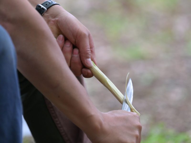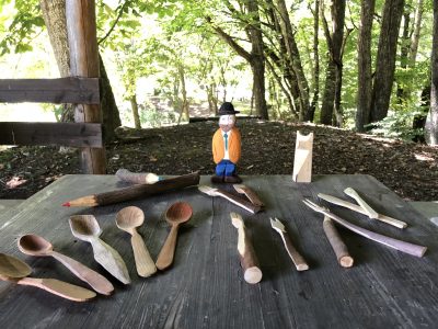 生木を削り、石器や火、ナイフを使ってスプーンやフォークに。