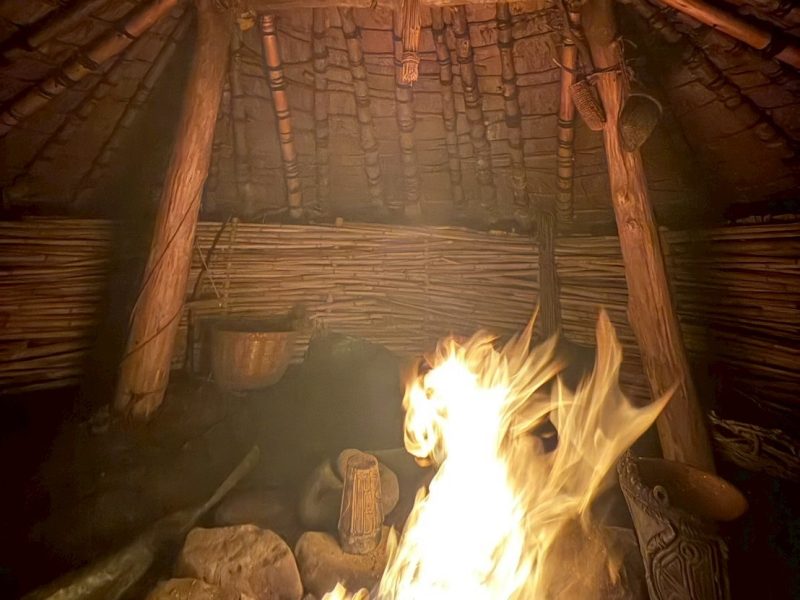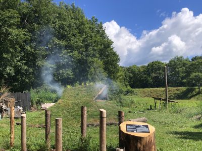 火おこし+浄水を組み合わせ。最後は竪穴住居で松葉茶や白樺茶を一服。