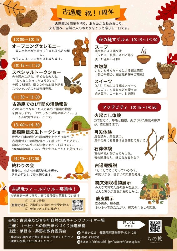 | アクセス | お車で:中央道諏訪インターから約25分(お車は尖石縄文考古館の駐車場をご利用ください) バスで:JR茅野駅よりバスにて約20分(9:20分発のバス) | |
