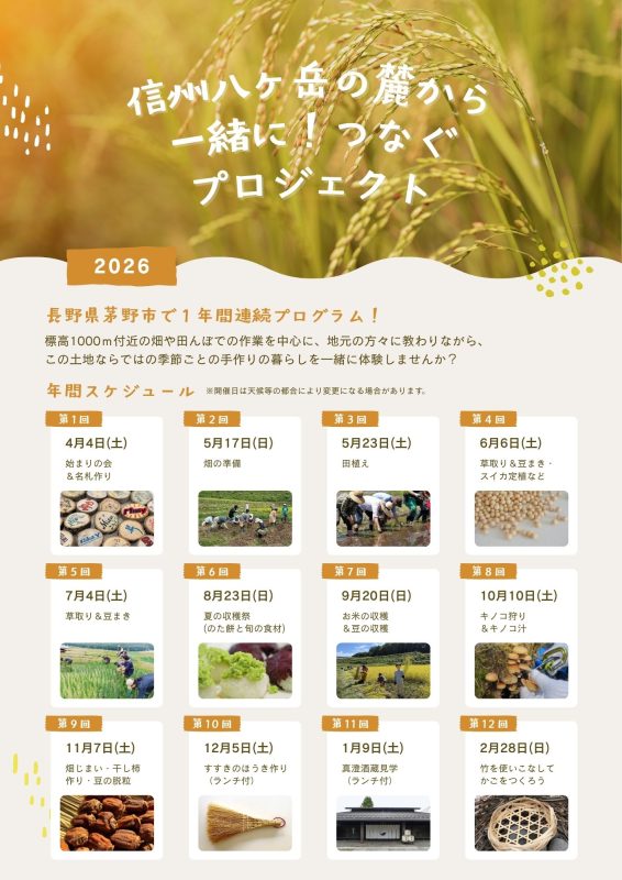 信州八ヶ岳の麓から 一緒に!つなぐプロジェクト2026 募集開始します