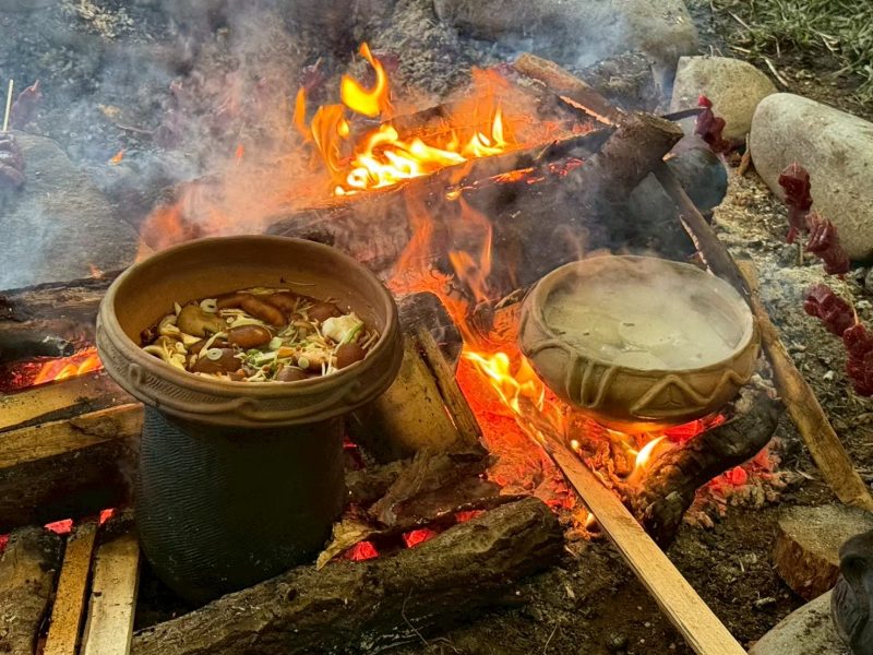 土に触れ、土器をつくり、火を起こし、調理し、植物を採り、道具をつくる。
